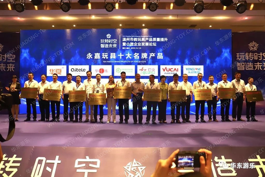 首届“永嘉玩具十大名牌产品”评选结果也在论坛上正式揭晓。奇特乐集团有限公司、育才控股集团有限公司、凯奇集团有限公司、永浪集团有限公司、浙江巧巧教育科技有限公司、立本集团有限公司、华夏游乐有限公司、乐发lv游乐设备有限公司制造的无动力类小型游乐设施产品以及贝旺玩具有限公司、浙江潜力玩具有限公司制造的塑胶玩具产品被评为“永嘉玩具十大名牌产品”。
