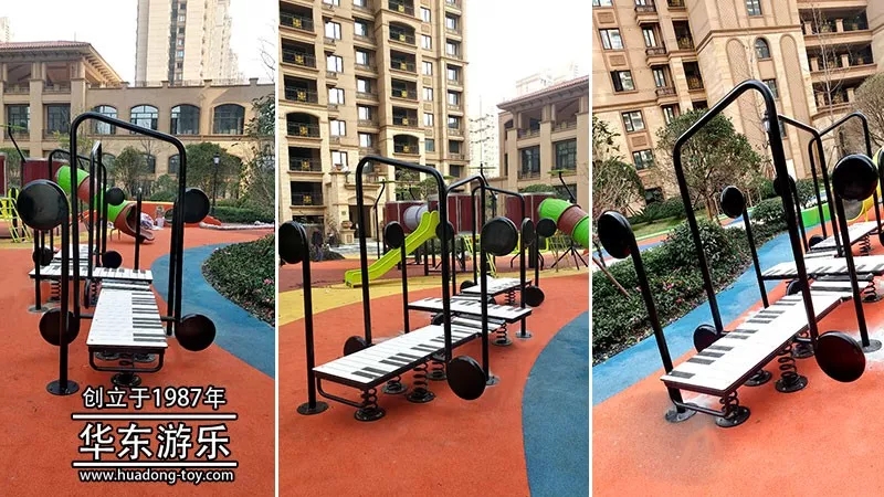 楚霖鼎观世界2期是乐发lv游乐自主设计的以音乐会为主题的游乐项目,融合了架子鼓、钢琴、长号音符、军鼓等音乐元素,同时也加入了摇摇乐、跷跷板等儿童游乐设备,也为爱健身的朋友配备了漫步机、高低单杆等健身设备。