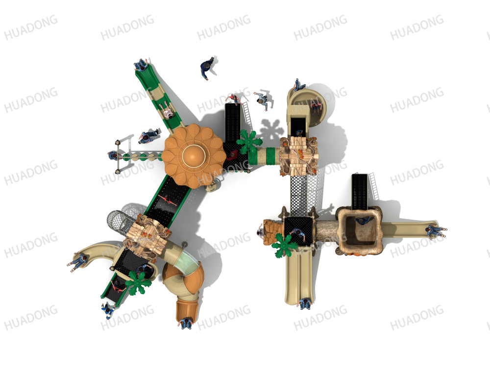 • 远古部落系列虽然名字带着“古”字,但是在设计细节处无不透露着艺术与创造性。当孩子在仿真树中探索、冒险、嬉戏游玩时,就像穿越到古老的神秘森林;粗略的树干包围着他们,头顶是高耸的茅草屋,触感真实的枯枝走廊,还有随处可见的小动物们…… 远古部落系列旨在打造区别于其他系列带给孩子们的新鲜感,让孩子们找设计者打造的神秘世界中获得冒险的乐趣。