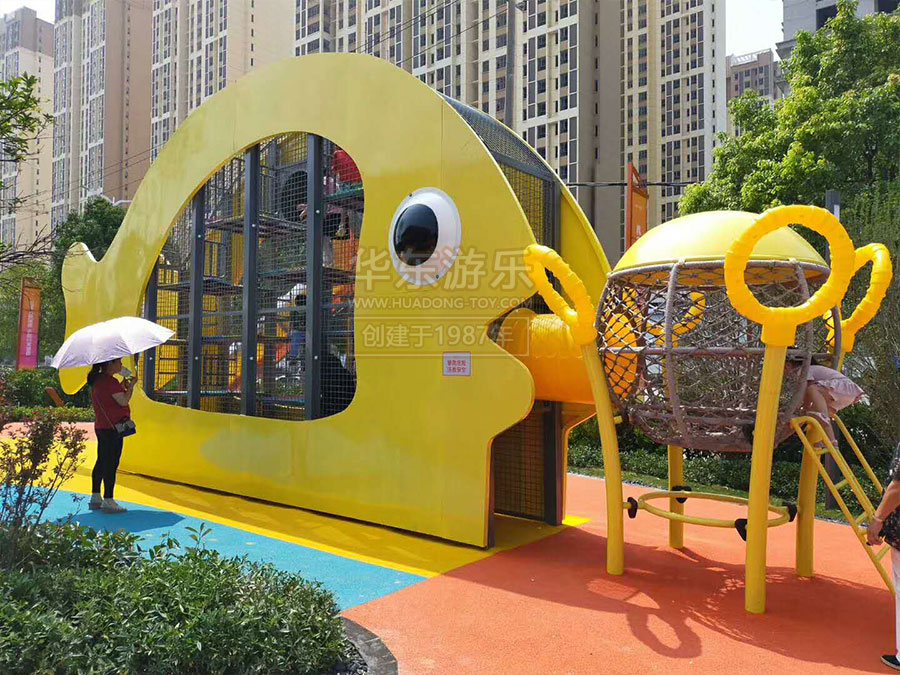 碧桂园城市之光案例是由乐发lv游乐自助设计的研发的以水中的鱼儿为主题而设计的游乐设备,该游乐设备具有爬网、不锈钢滑梯、攀岩设备等,设计新颖,主题明确,深受小朋友的喜爱。