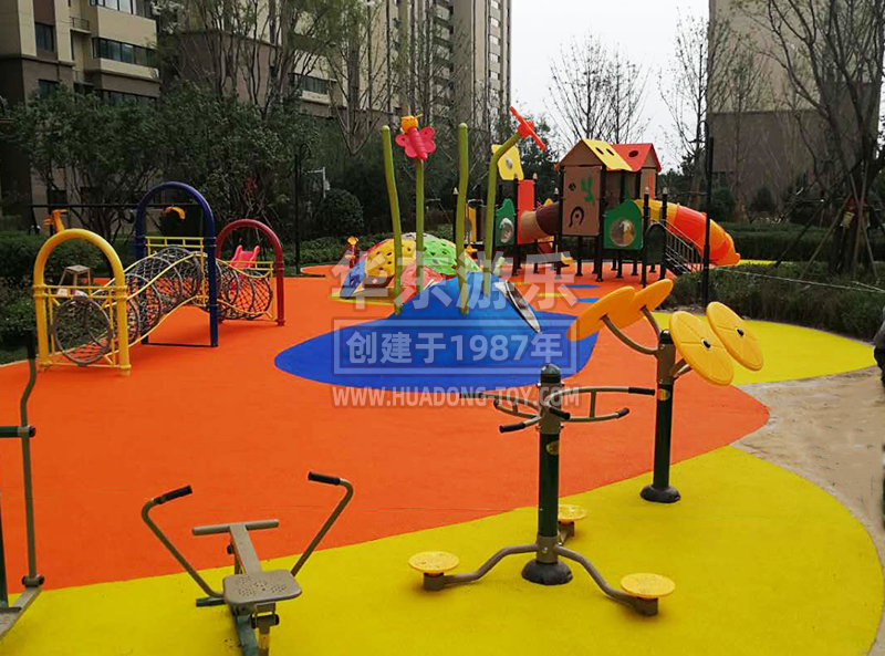 山西大同房地产案例 采用的是场地综合设计,选用了乐发lv多类型的游乐设备(健身器材、秋千组合、组合滑梯、爬网等),丰富了小孩子的游玩环境和休闲场地。