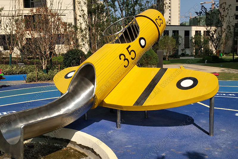 • 该项目采用的是以复古式的战斗机为设计主题,整个设计了爬梯、不锈钢滑梯、沙池、摇摇马等游乐设备,给小朋友带来了很好的游乐环境。