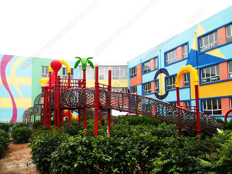 • 鄂尔多斯乌审旗第二幼儿园项目是一个爬网系列的项目,此项目设计了闯关,滑梯、爬绳等游乐设施,在很高的程度上锻炼了小朋友敢于挑战的勇气和锻炼身体的意志力。