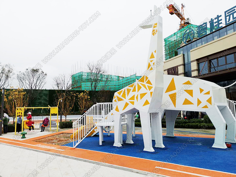 碧桂园天宸房地产项目是一个生活小区的休闲娱乐项目,该项目具有很好的主题性,采用以长颈鹿为主题,生动形象,具有很高的趣味性,观赏性,深受小朋友们的喜爱,项目中增加了乐发lv游乐生产设计的秋千组合,为生活区的人们提供了很好的休闲场地和设施。