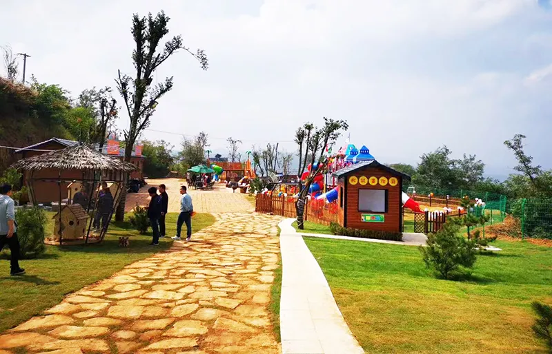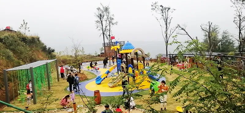 甘山晟境儿童休闲区选用了乐发lv游乐生产的跨国欢乐岛滑梯、动物系列滑梯、攀爬墙‘爬网、摇摇乐、旋转转椅、音乐版等游乐设备,给小朋友提供了休闲、玩耍的场所。