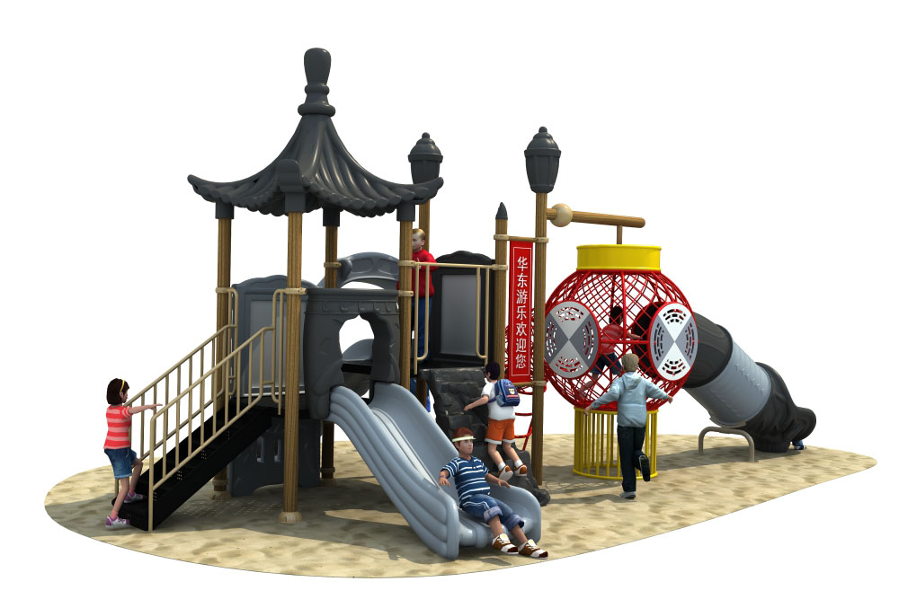 • 中国风系列是一种具有中国风建筑特色的大型滑梯组合,以苏州园林与徽派建筑为灵感,将凉亭、房屋、大红灯笼融入现代游乐设备,体现建筑美学的简洁、复古、大方,为孩子打造一个奇妙的游乐世界,积极培养孩子对中国传统文化的热爱,弘扬中国传统与亲身体验。