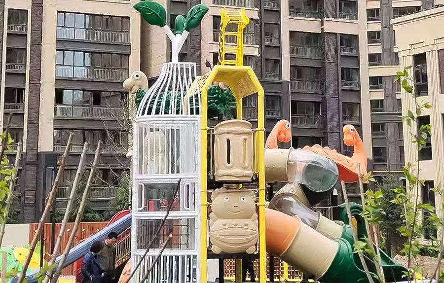 房地产综合项目规划是房地产游乐项目主要的设计类型,此次项目采用的是乐发lv游乐生产的动物系列滑梯作为主要游乐设备,并且配备了跷跷板、摇摇乐、秋千、毛毛虫钻洞、攀爬墙、万能拓展等游乐设备,不仅丰富了生活在该小区人们的生活、也为小朋友的发展提供了一个很好的游乐场所。