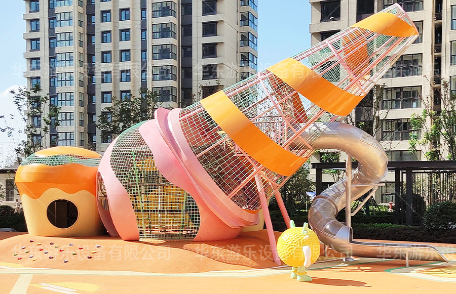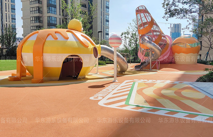 • 南京朗诗玲珑郡是一个地产性的综合项目,整个项目采用奶酪屋,冰淇淋甜筒为主题设计,整个游乐场充满了梦幻和奇妙,让小朋友在这个奇妙的世界探索美食的奥秘,整个游乐场设置了秋千组合,摇摇马钻洞、爬网、不锈钢滑梯等游乐设施,能够让小朋友在这里愉快的玩耍。