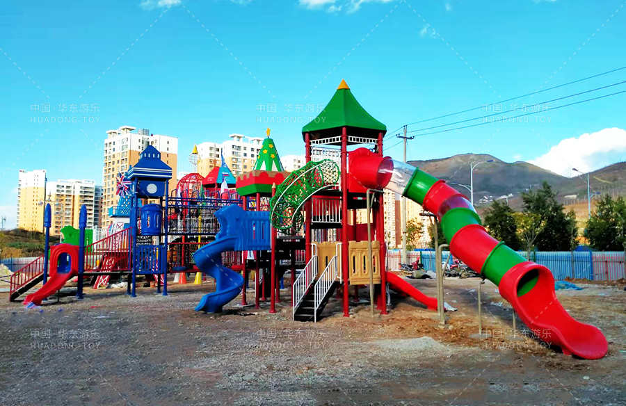 该游乐园选用的是乐发lv游乐自主生产和研发的跨国系列大型组合滑梯,该滑梯具有爬网、攀爬墙、旋转滑梯、空中爬网、U型网桥、平衡吊环等功能,是一款风格多样、功能齐全的游乐设备,深受小朋友们的喜爱。