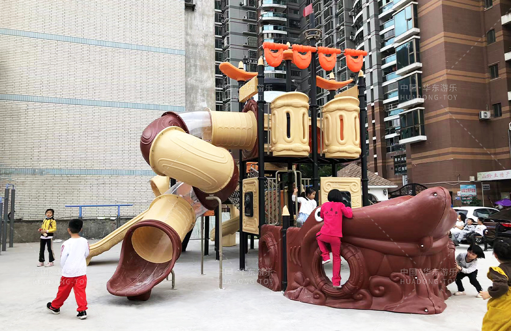 • 该海盗船是一个具备攀爬、滑梯、滑桶、攀爬网为一体的综合性组合滑梯,经过科学的设计、完善的工艺制作而成,具有颜色艳丽、主题性强、经久耐用、使用寿命长等特点。