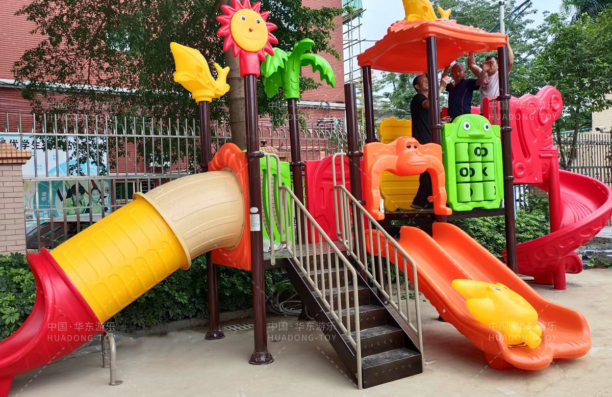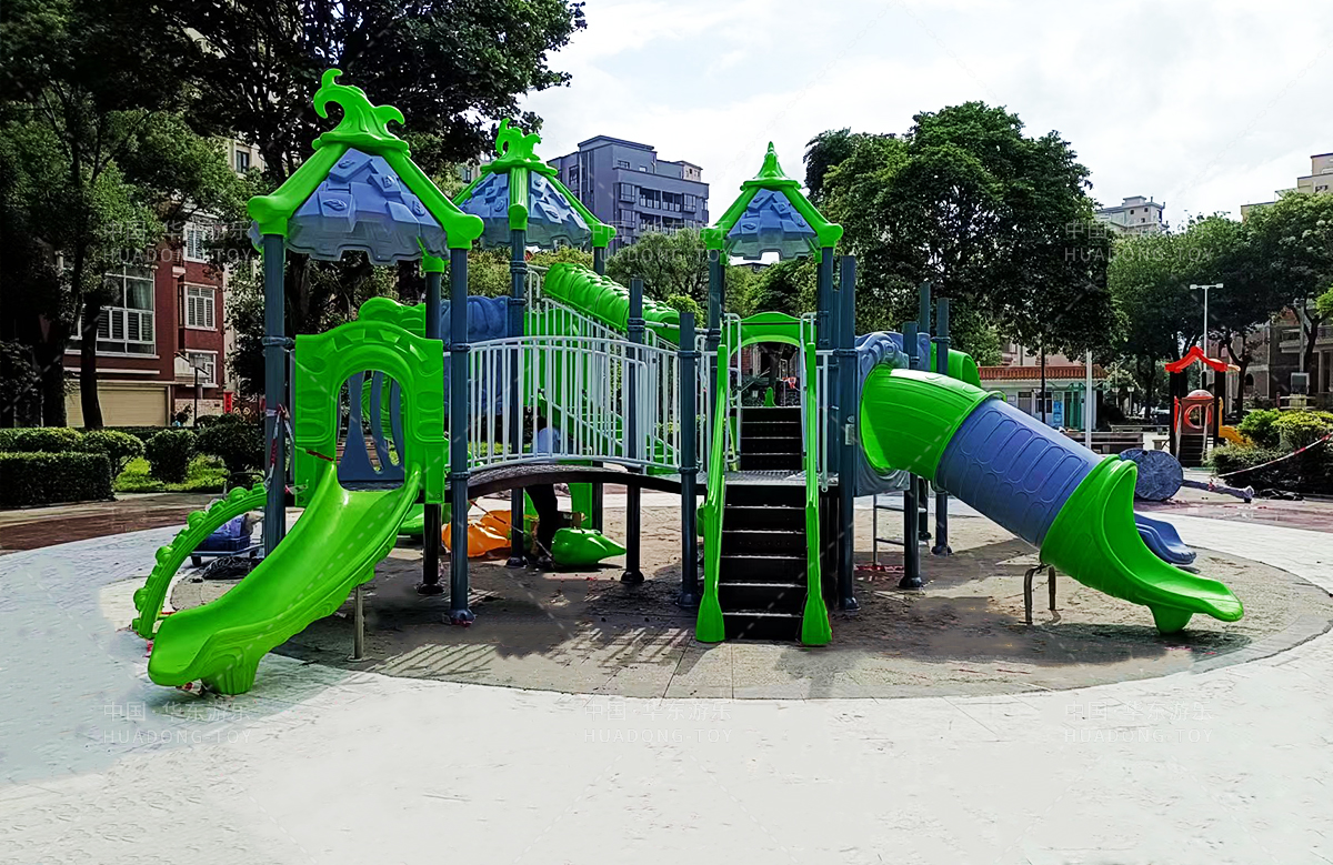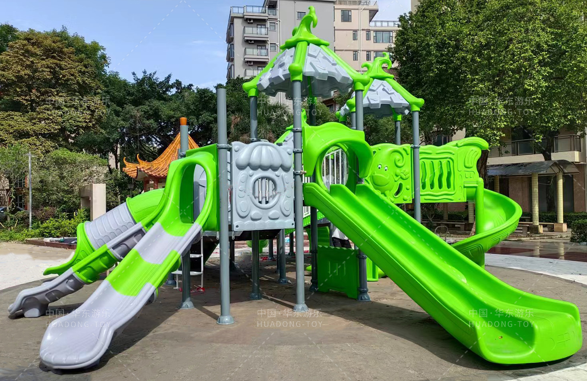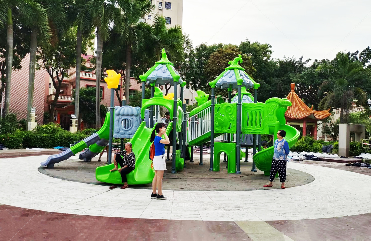 该小区选用的是乐发lv游乐自主研发和设计的具有攀爬、钻洞、滑梯为一体的魔法屋系列组合滑梯和动物园系列滑梯,让生活在该小区的人有一个休闲娱乐的场所。