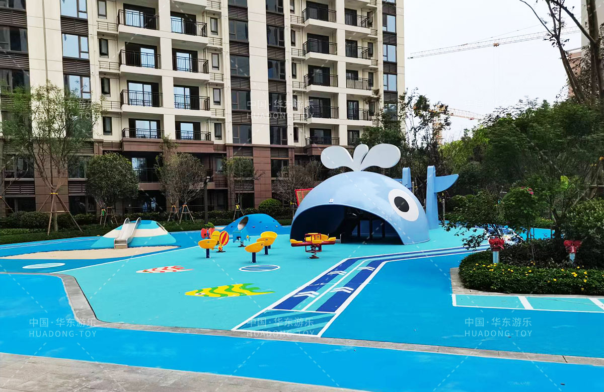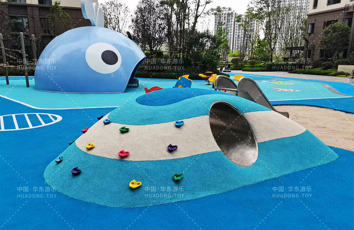 该项目采用的是以海洋为主题的儿童游乐园,整个项目以海洋里游荡的大鲸鱼为主要背景,设计了小朋友喜欢的滑梯、钻洞、沙池、盘爬坡等游乐设备,为小朋友的生活学习 提供了一个很好的娱乐场所。