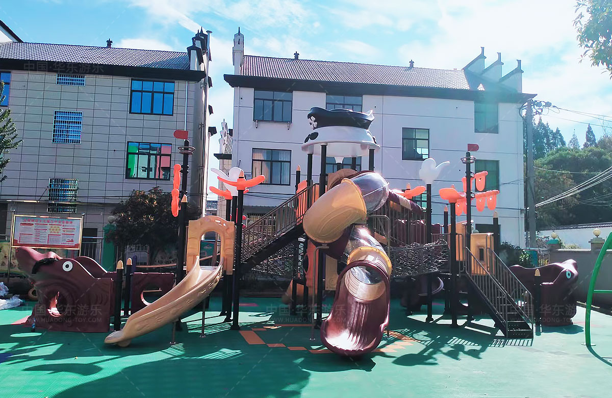 江西省上饶市玉山县四股桥中心幼儿园是一个专业的学前教育机构,为了更好的让孩子们有一个学习、娱乐的场所,该项目选用的是乐发lv游乐自主研发和生产的海盗船系列组合滑梯,该滑梯具有主题性强,功能齐全、玩法多样、使用寿命长等特点,深受小朋友们的喜爱。