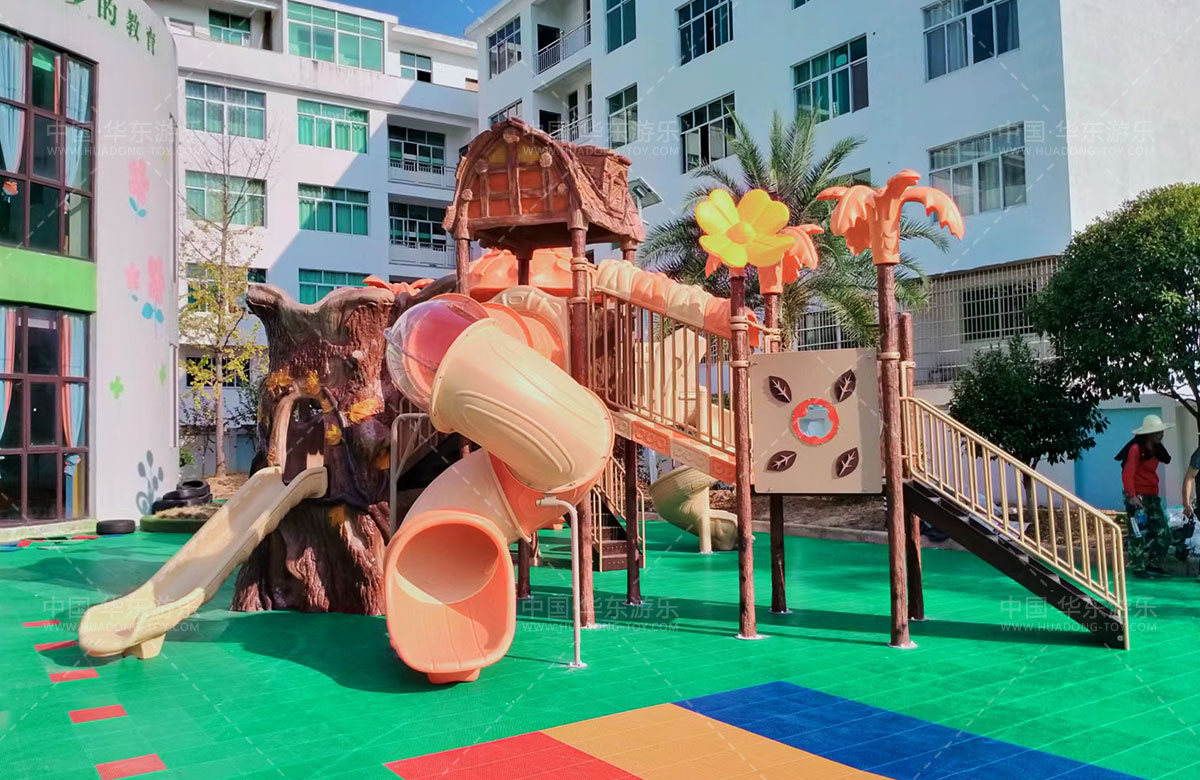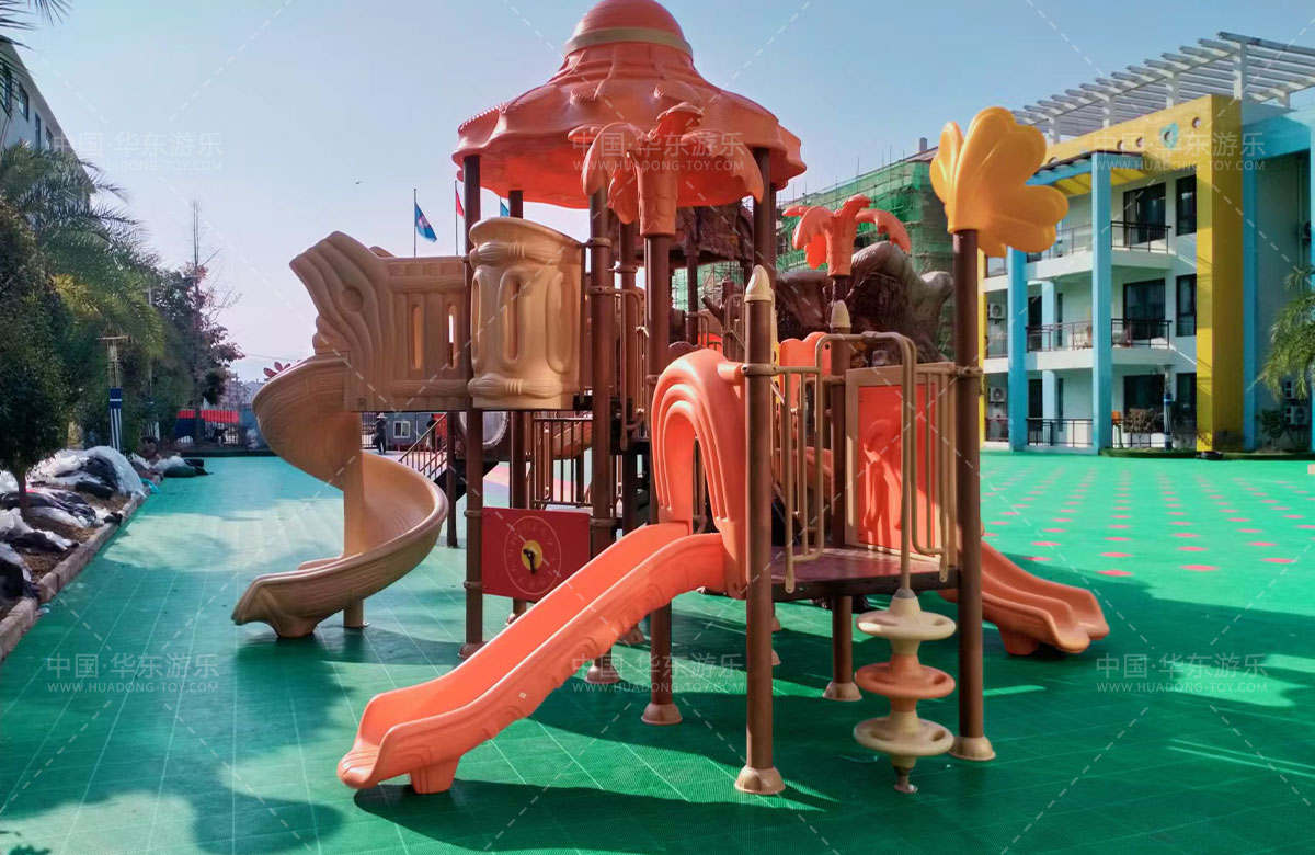 江西省上饶市临湖中心幼儿园是一个专业的学前幼儿教育学校,此次选用的是乐发lv游乐自主研发和设计的具有滑梯、钻洞、攀爬等功能为一体的远古部落系列的组合滑梯,该滑梯具有功能齐全、颜色艳丽、主题性强、使用寿命长等特点,深受小朋友们的喜爱。