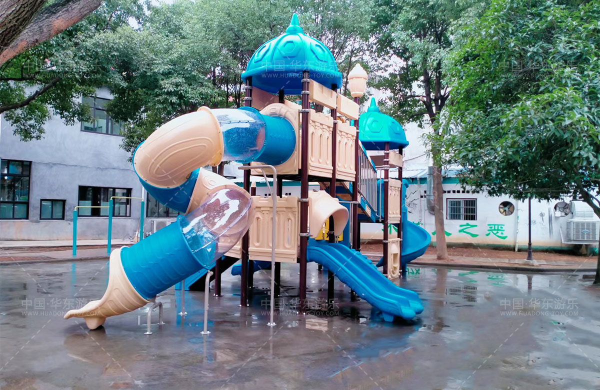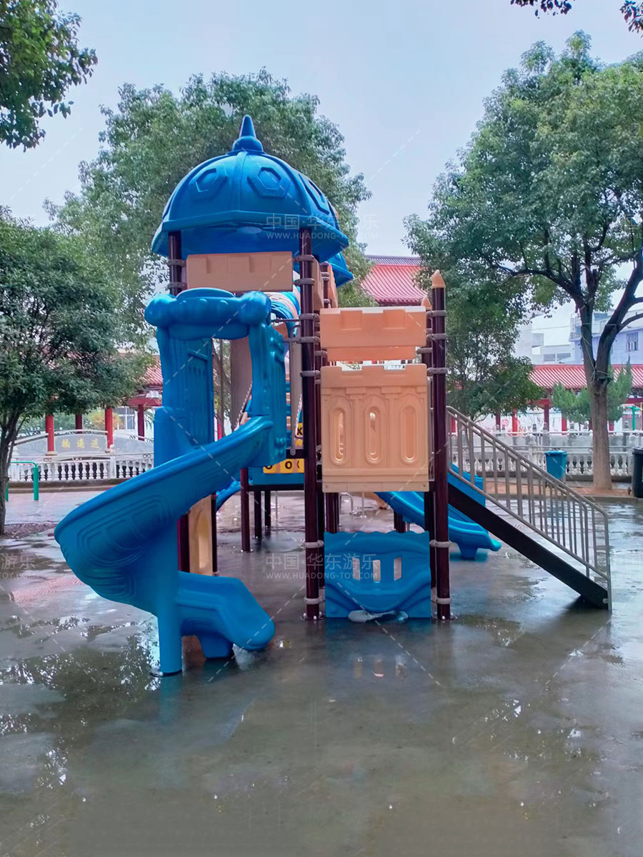 乐清市虹桥镇邬家桥村公园选用的是乐发lv游乐自主设计和研发的别墅屋系列滑梯,该滑梯具有 S型滑梯、旋转滑梯、走梯、攀爬墙、钻洞等功能为一体的游乐器械,是一款使用寿命长、安全环保的游乐设备。
