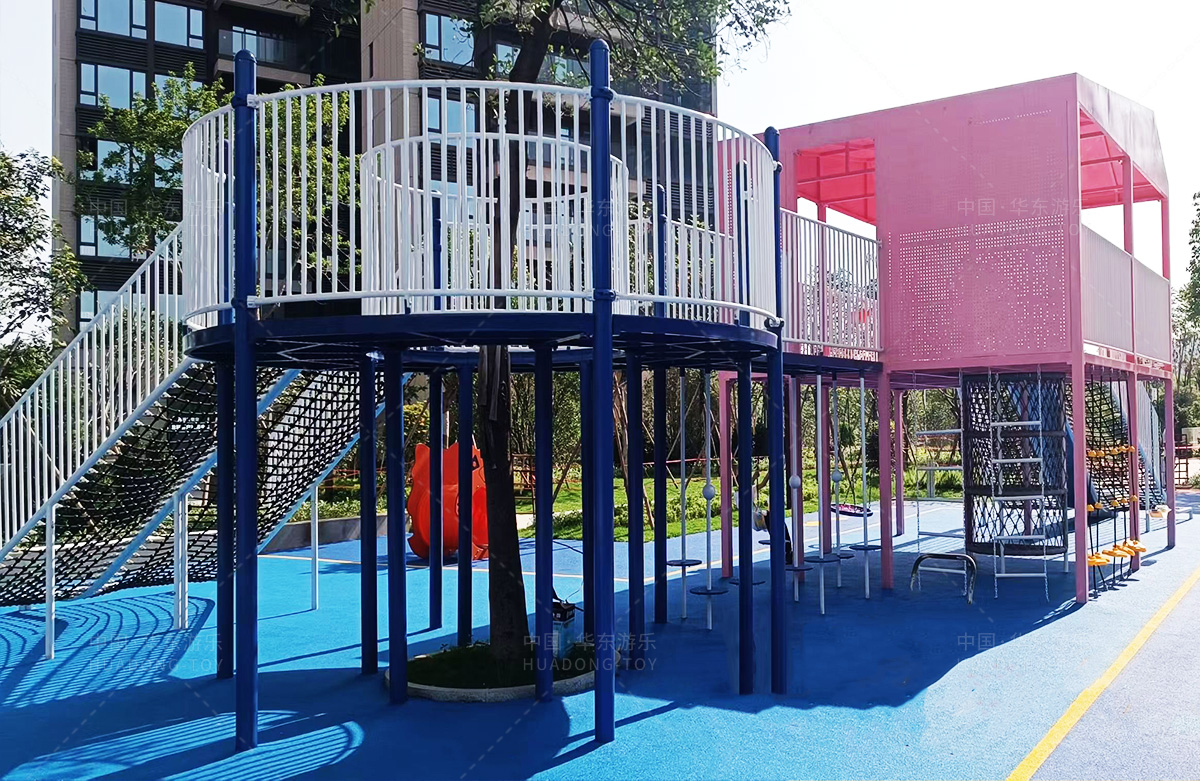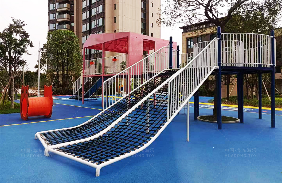 该房地产选用的是乐发lv游乐设计和生产的非标定制系列的游乐设备,分别设置了跷跷板、摇摇乐、钻洞、传声筒、蜗牛主题组合滑梯,以及具有钻洞、攀爬网、攀爬绳、攀爬梯等功能为一体的空中小屋的游乐设备,该游乐园的建设不仅仅丰富了小区人们的休闲生活,还为小朋友提供了一个休闲、娱乐的场所。