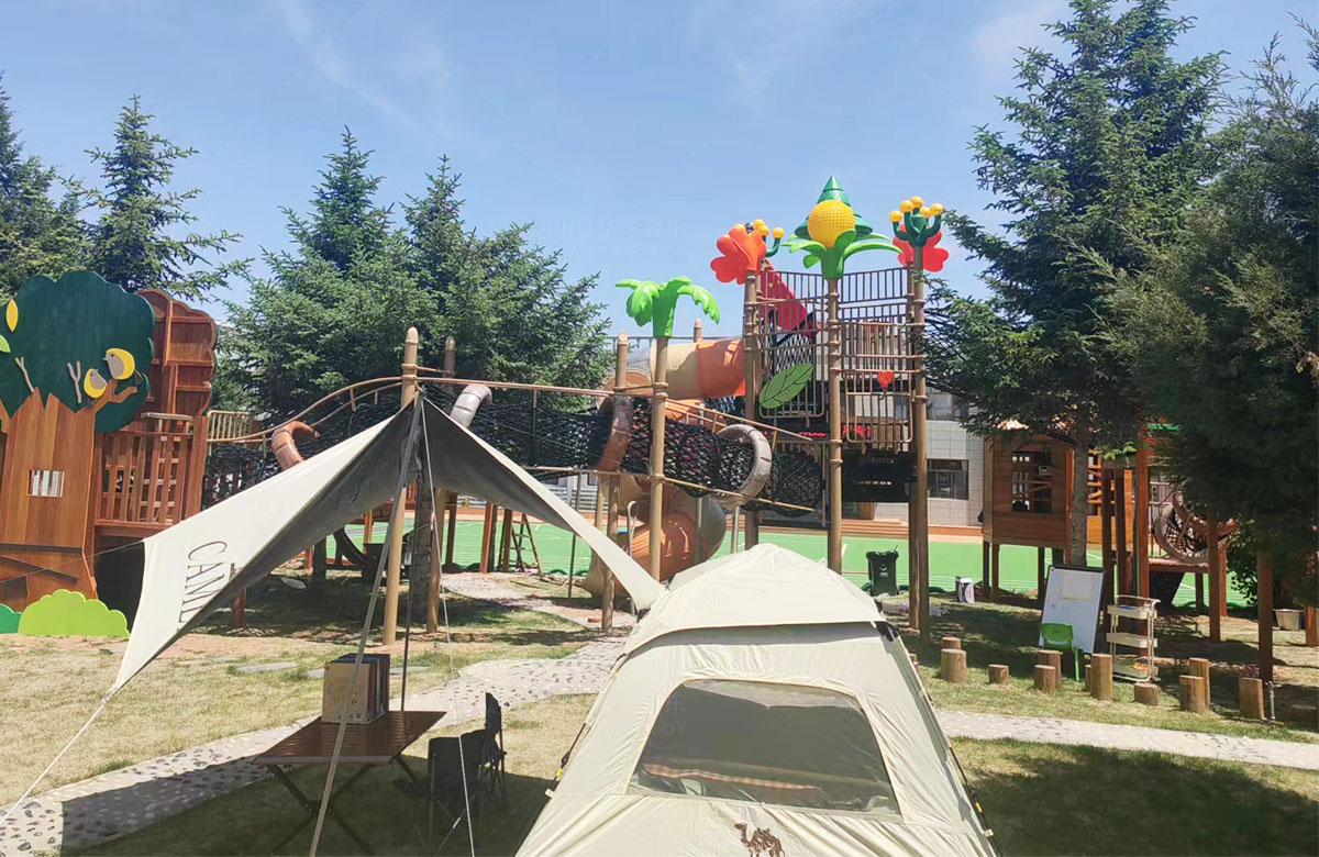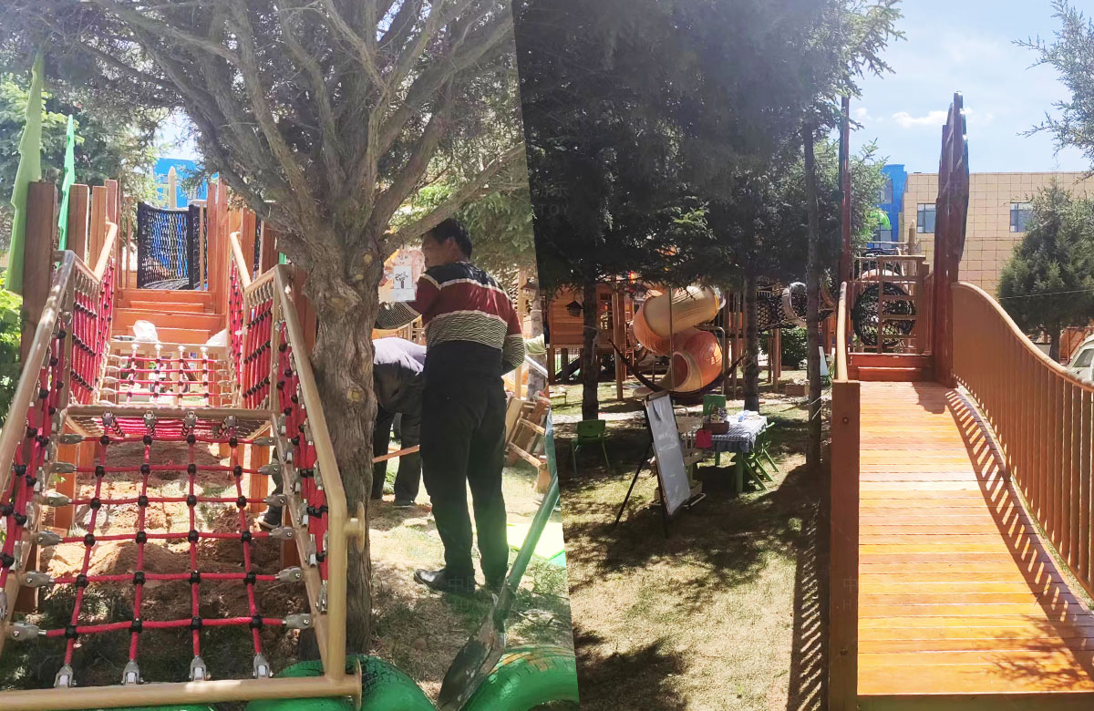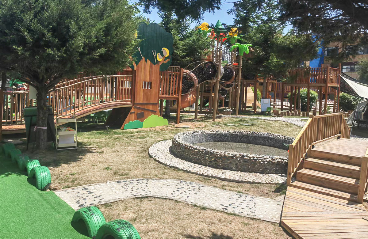该幼儿园是一个专业性的学前教育培训机构,选用的是乐发lv游乐自主研发和设计的具有空中攀爬网、钻洞、空中栈道、游戏小屋、直行滑梯为一体的综合性 游乐设备,这些设备的选择不仅仅丰富了孩子们校园的生活,还很好的锻炼了小朋友的攀爬能力、四肢的协调能力、攀爬过程中的平衡能力,同时也促进了孩子们大小脑的发育。