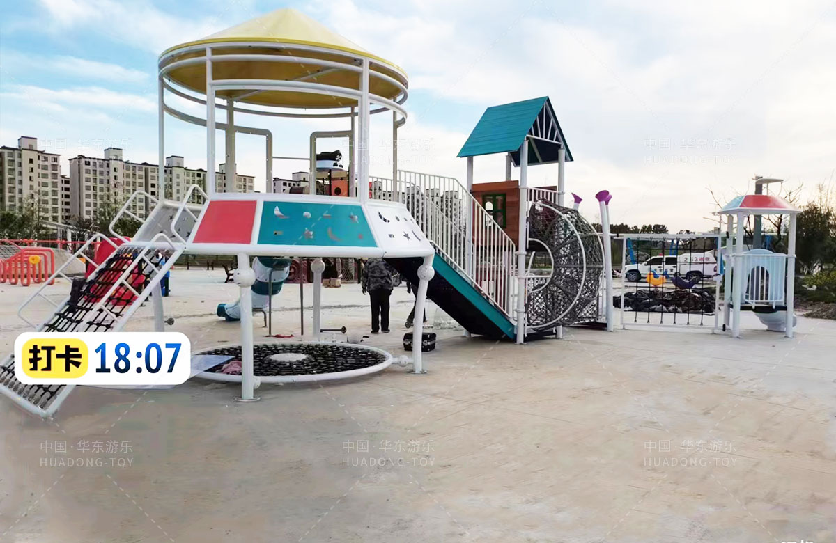 • 该项目是一个综合的游乐场地,为了更好的促进人民生活水平,增强全民的运动的发展,该游乐场设置了小朋友喜欢的大型组合滑梯、儿童摇摇乐、攀爬网、组合秋千、传声筒、攀爬墙、休闲厅等游乐设备,不仅仅丰富了居民的出行生活,也为小朋友的健康成长提供了保障。