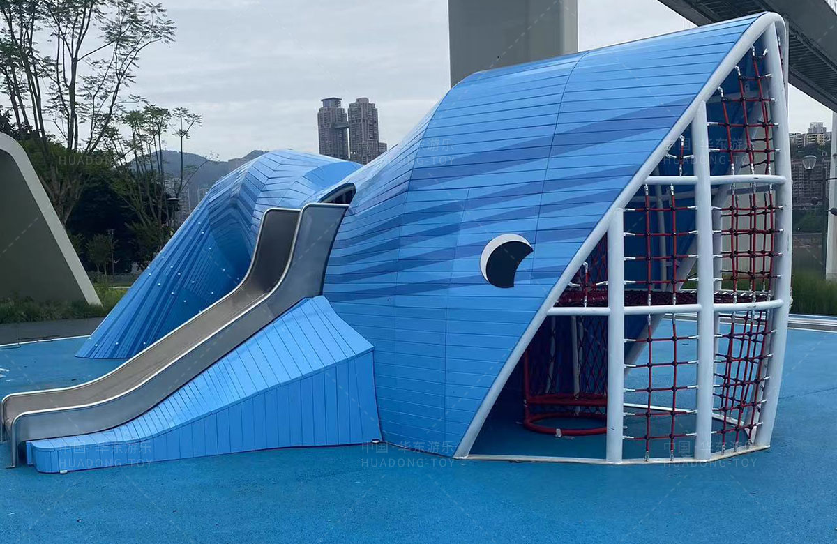 重庆市珊瑚公园是一个公益性的,专门为该区域游玩的人群提供休闲、娱乐的场所,此次选用的游乐设备是乐发lv游乐自助研发和设计的以大鲨鱼为主的非标定制设备,具备了攀爬网、攀爬墙、钻洞、不锈钢滑梯等功能。