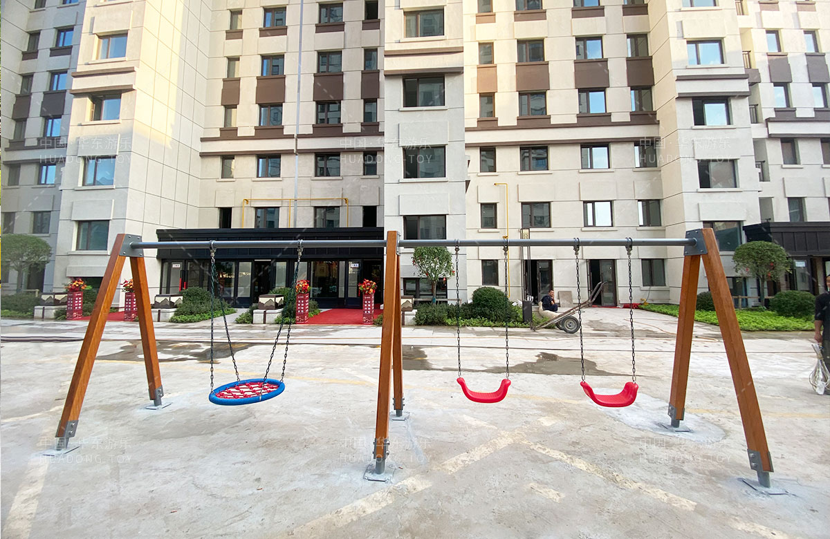 哈尔滨市南岗区学府选用的是乐发lv游乐自主研发和设计的远古部落系列的组合滑梯,该滑梯具有功能齐全、玩耍多样、使用寿命长等特点,除此之外还增加了儿童跷跷板、儿童秋千等儿童游乐设备,不仅仅丰富了孩子们的玩耍场所,也小区的生活增添了更多的生机与活力。