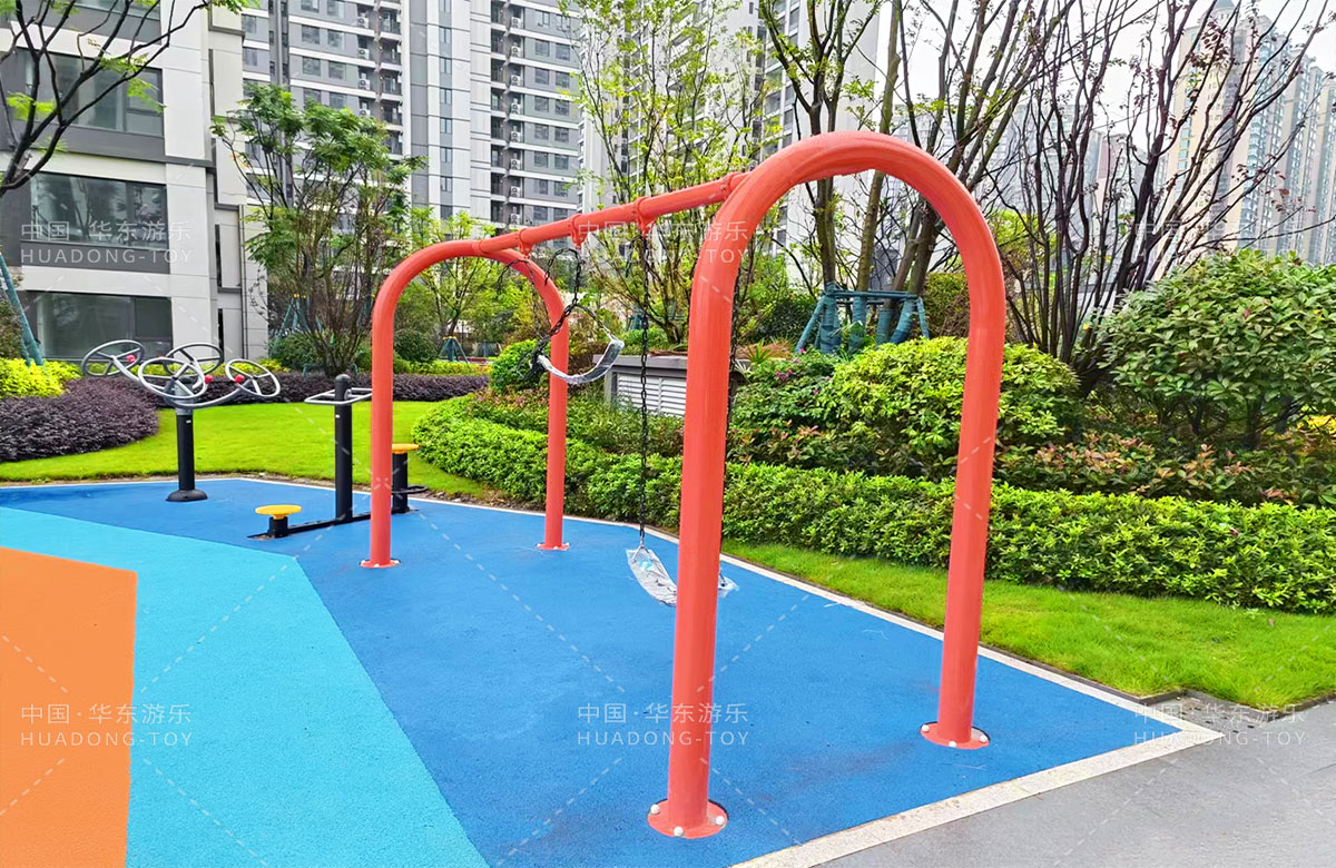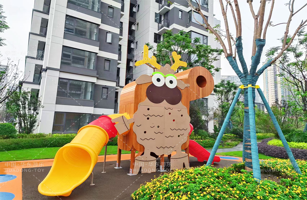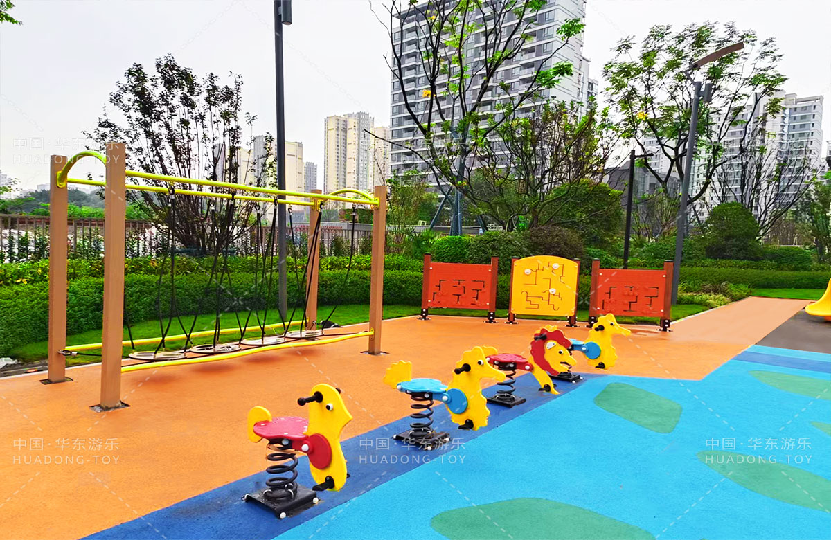 四川省成都市新城林屿溪选用的是乐发lv游乐自主研发和设计的非标定制系列的游乐设备,为了更多让小朋友们有一个玩耍的场地,整个游乐场分别设计了儿童摇摇乐、儿童秋千、成人健身器、趣味迷宫、平衡吊桥、旋转椅、象鼻组合滑梯等游乐设备。