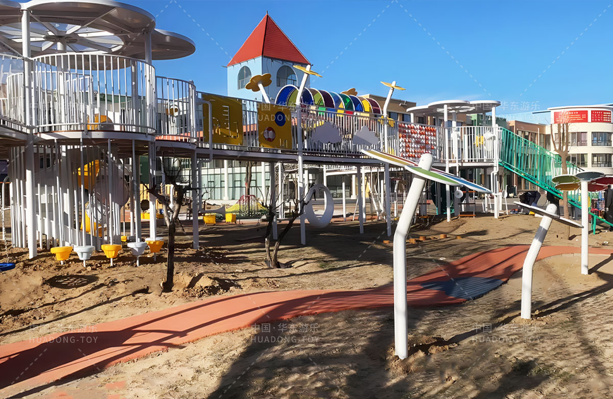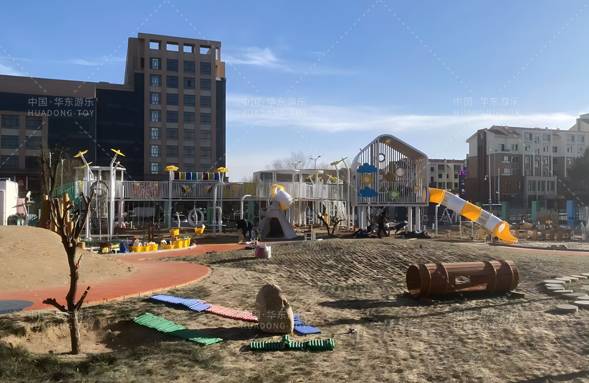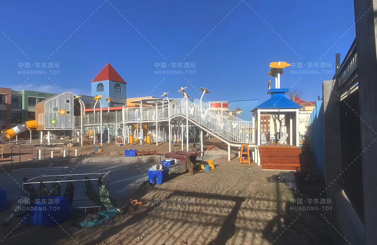 鄂尔多斯市鄂托克旗蒙古族幼儿园是一家专业的学期教育培训机构,此次选用的是乐发lv游乐自主研发和设计的非标定制系列的游乐设备,分别设计了空中廊架、月亮秋千、平衡踩桩、儿童沙袋、大型滑筒、儿童秋千、攀爬网、游戏小屋等功能,为孩子的玩耍提供了保障,也为老师的教学提供了一个很好的场所。