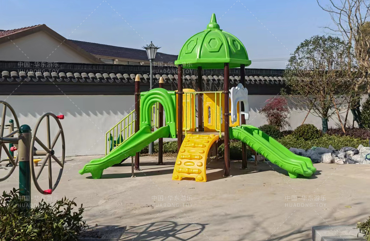 常州市桃花院子选用的是乐发lv游乐自主研发和设计的别墅屋系列组合滑梯,该滑梯采用滚塑一体成型,具有颜色艳丽、使用寿命长等特点,同时为了更好的为生活在该小区的人们服务,还设置了各种类型的健身器,以及小朋友喜欢的儿童跷跷板、儿童秋千和传声筒等游乐设备,不仅丰富了小区的生活,也为小朋友的玩耍提供了一个很好的场所。