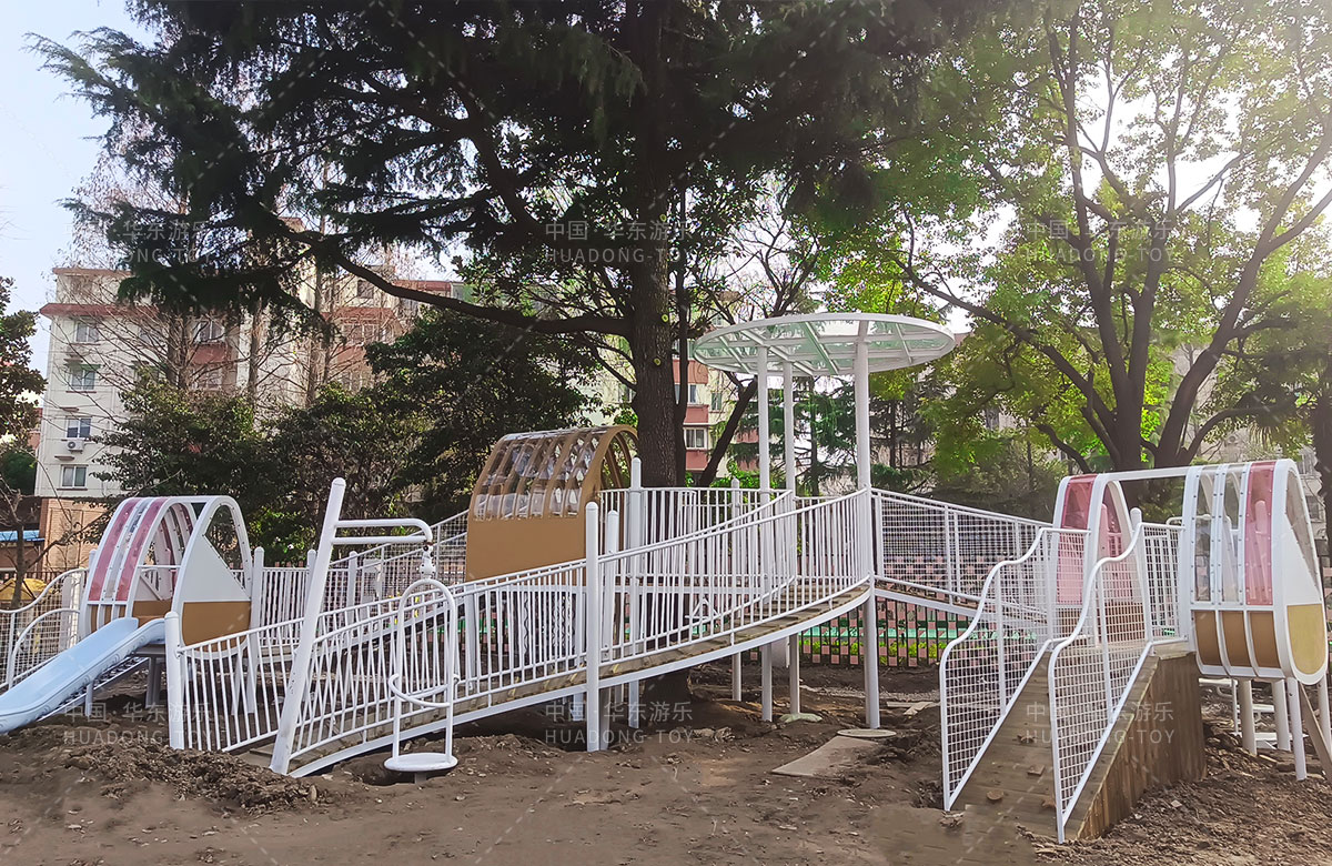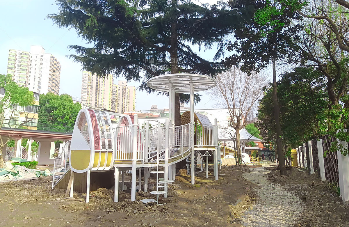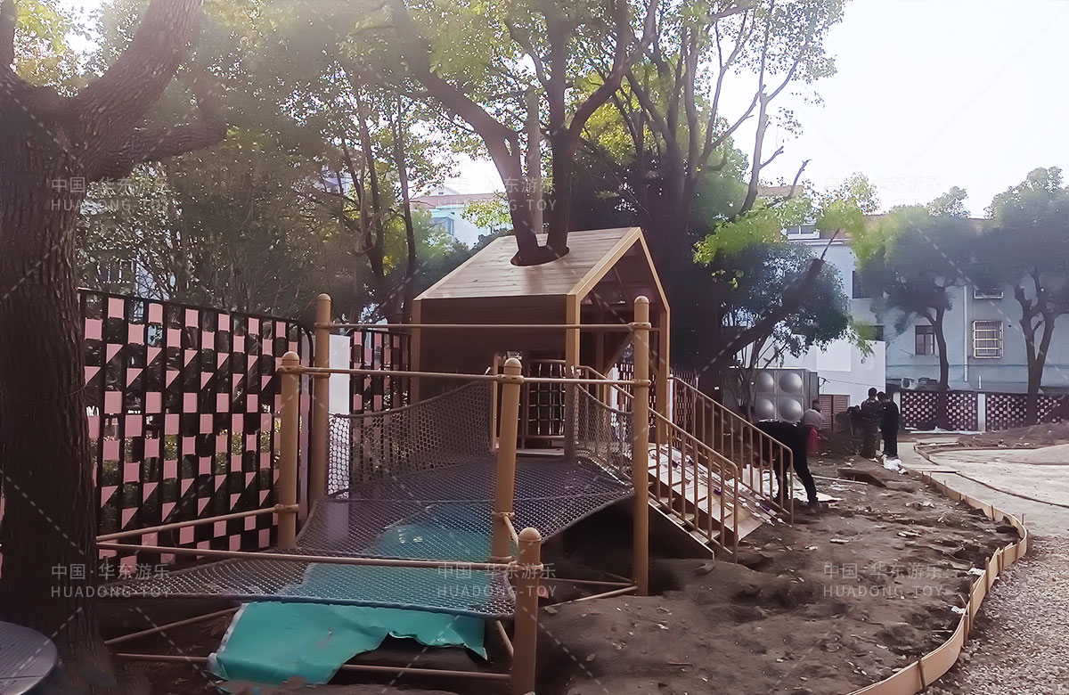 虹口区实验幼儿园简介创建于1993年9月。1994年定为一级一类幼儿园。儿园具有现代化的设施和美丽童趣的园舍。总占地面积4800多平方米。建设面积3000多㎡。绿化面积1800多㎡。 此次幼儿园游乐项目选择的是乐发lv游乐自主研发和设计的一款综合性木质系列非标定制产品,不仅功能齐全,主体性也非常的适合幼儿园的场景设置。