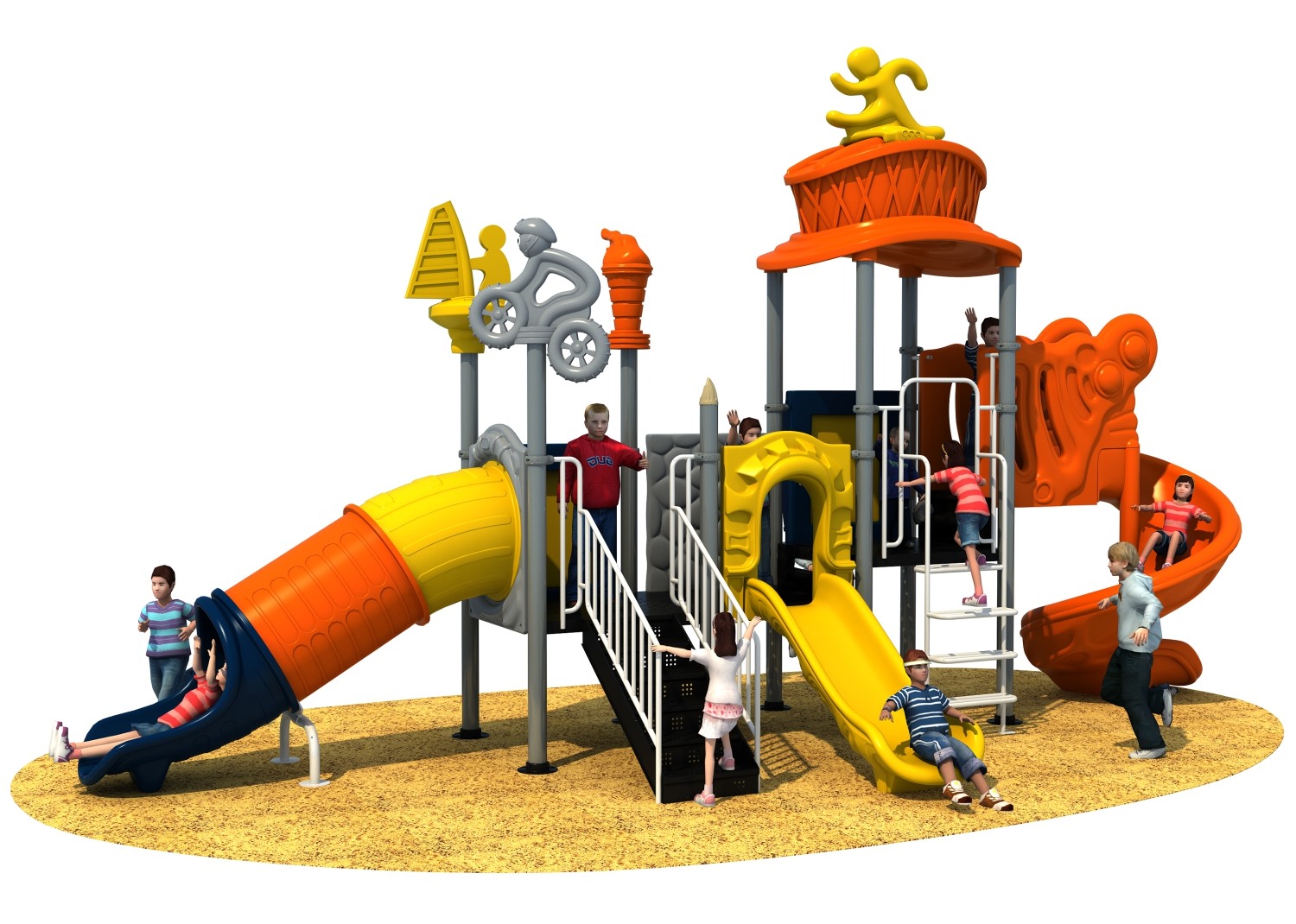 • 赛事系列游乐设备是乐发lv游乐根据常见的足球、垒篮球体育等赛事而自主研发和设计的组合滑梯,它是一款能够引导孩子们在玩耍时小朋友之间应该互相帮助、相互鼓励的无动力游乐器械,也是一个具备教导孩子们学会通过自己的努力取得最终胜利而敢于拼搏和挑战的游乐设备,卡通的造型、生动的形象让小朋友在玩耍的过程中有一个愉快的童年。
