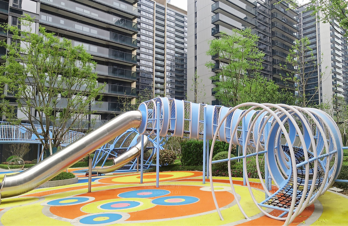 温州德信是一家高端居民小区,为了更好的提供高端的服务,该小区选用的是乐发lv游乐自主研发和生产的以“田螺公主”为主题的综合性游乐园,设置了孩子们喜欢的钻洞、攀爬、秋千、摇摇乐、翻翻乐、不锈钢滑梯、攀爬网等功能的游乐设备,不仅丰富了小区的生活,也为孩子们的玩耍提供了一个很好的游乐场所。