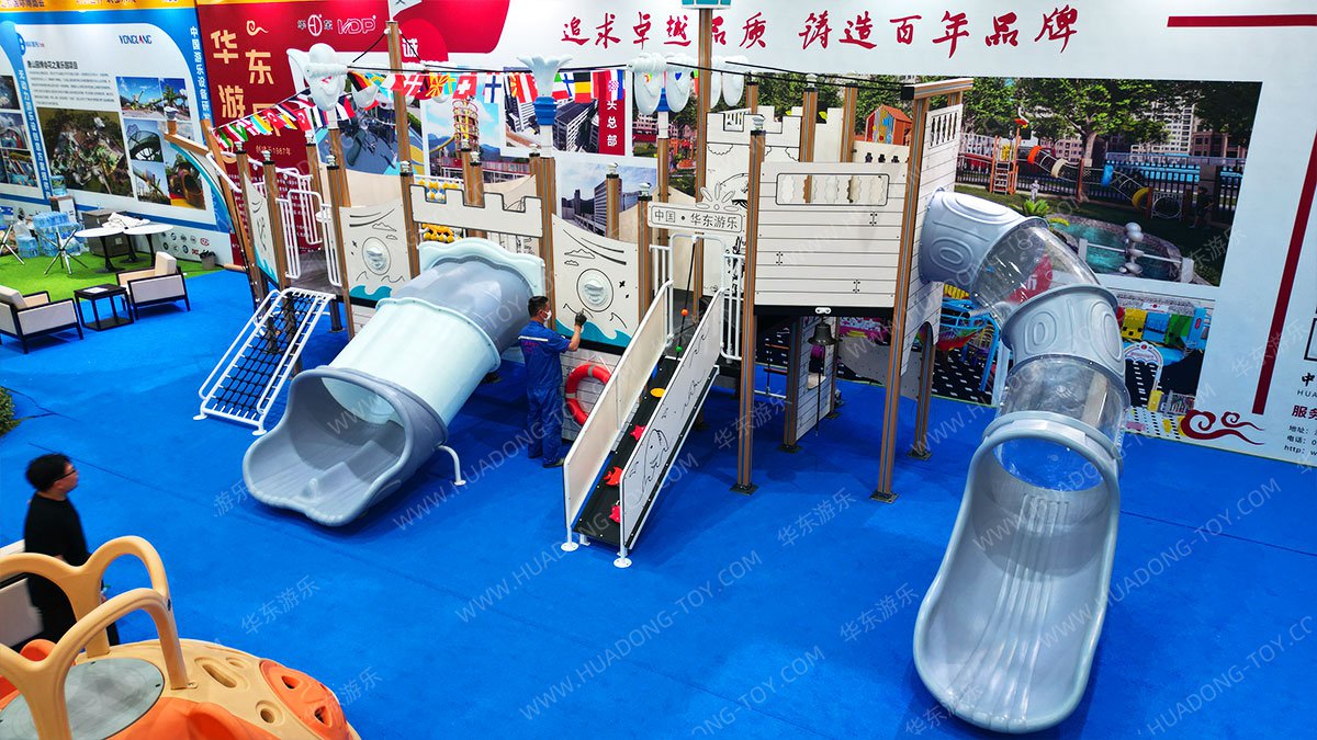 展品说明:该展品以海盗船为主题设计的组合滑梯,为孩子们打造了一个充满冒险与刺激的游乐天地。滑梯整体以白色为主调,彰显出清新与纯净,而海盗船的装饰元素则增添了神秘与趣味。让孩子们在玩耍中锻炼身体,激发想象力。在这里,孩子们可以化身为勇敢的海盗,和军团一起尽情享受滑梯带来的欢乐,留下难忘的童年回忆。
