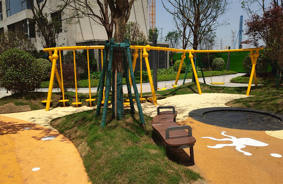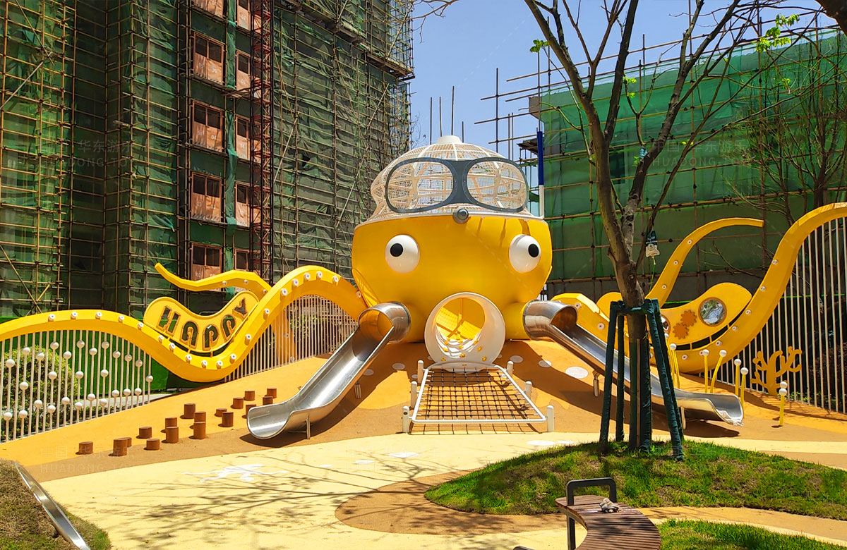 襄阳金辉优步学府此次选用的是乐发lv游乐自主研发和设计的以章鱼为主题的的游乐设备,该设备以生动的形象向小朋友展示了游乐设备的多姿多彩,结合各种的攀爬网、攀爬梯、不锈钢滑梯、攀爬杆、不锈钢钻洞、组合秋千,不仅仅丰富了小区的生活,同时也为生活在当地的人群提供了一个休闲、娱乐、遛娃的场所。