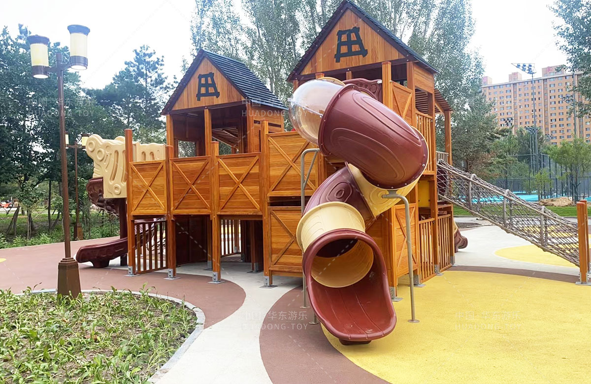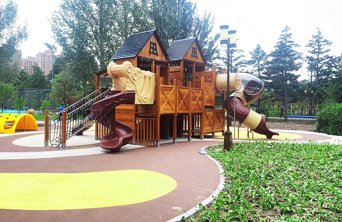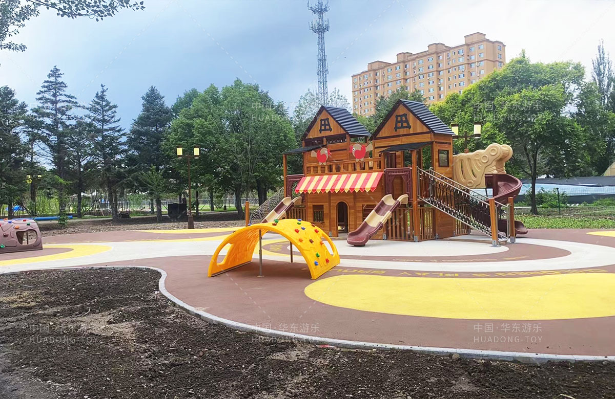 吉林省白城市洮北区兵器城小区是一个综合类型的居民小区,该小区设置了各种类型的 游乐设施,为了更好的为人民提供一个休闲娱乐的场所,此次选用的是乐发lv游乐自主研发和设计的木质小屋系列的组合滑梯,除此之外还设置了孩子们喜欢的各种攀爬游乐设备。