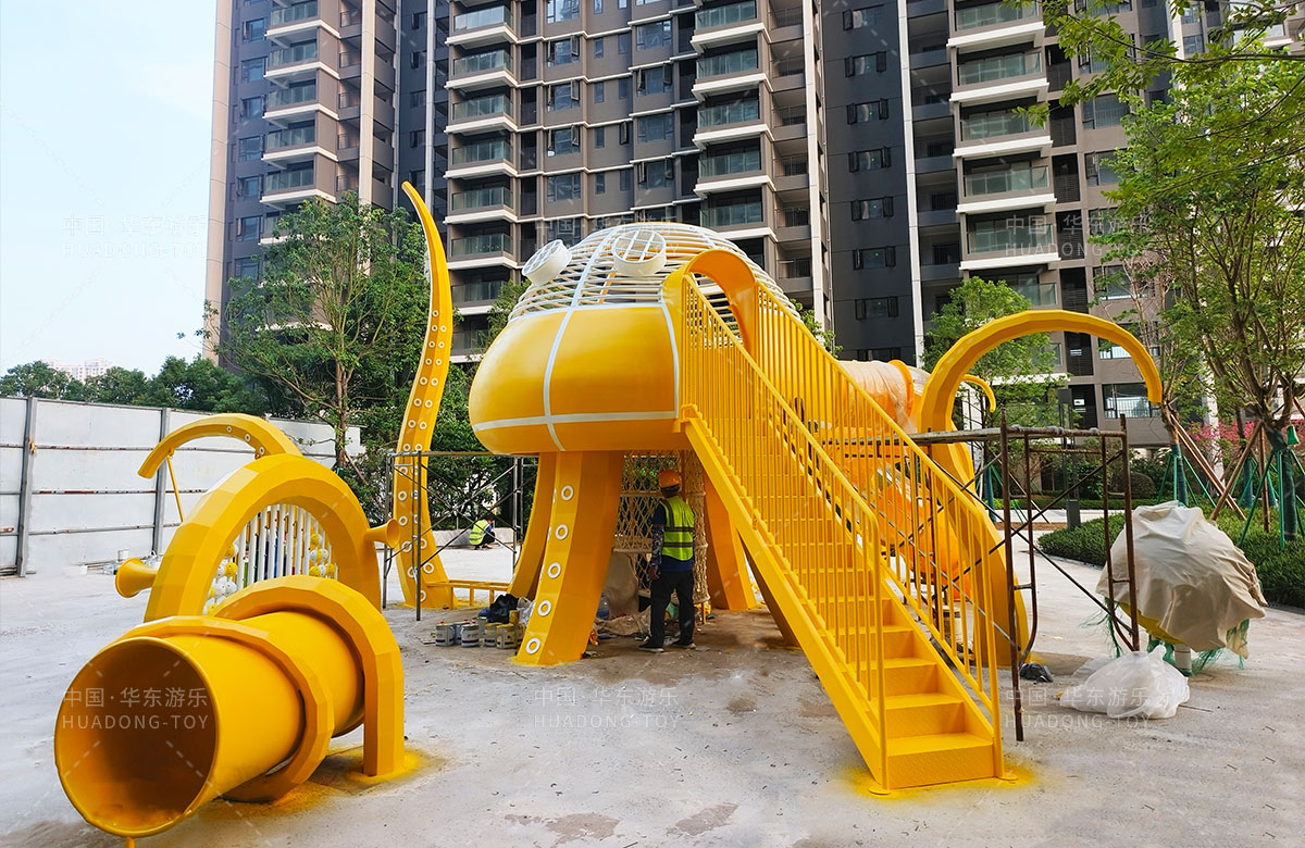 中海地产汕头阅江府选用的是乐发lv游乐自主研发和设计的以章鱼为主题而设计的非标定制的章鱼主题综合游乐园,整个游乐园用一个大型的章鱼设备为主题,设计了集钻洞、攀爬网、滑梯、打击乐器等功能为一体的综合性游乐设备,为生活在当地的人群提供了一个休息娱乐的场所,也为小朋友们的健康成长提供了保障。